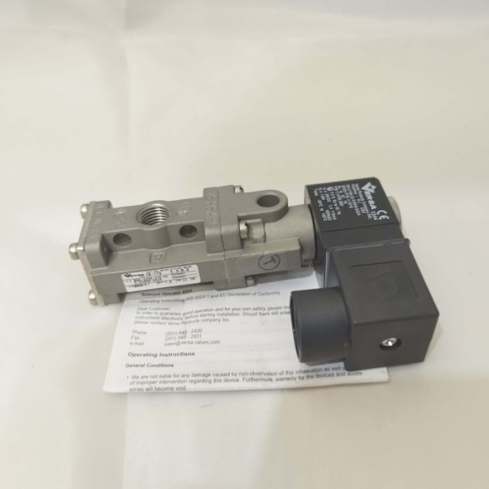 شیر کنترل جهت پنوماتیکی سری B برند VERSA، دارای اکچویتور یا محرک فنر برگشتی میباشد. نوع شیر برقی سلونوئید پایلوت و سه راهی با اندازه بدنه 1/4 اینچی میباشد. نوع سولنوئید جانبی پایلوت داخلی و در حالت عادی بسته NC، و دارای بدنه محافظ میباشد.
