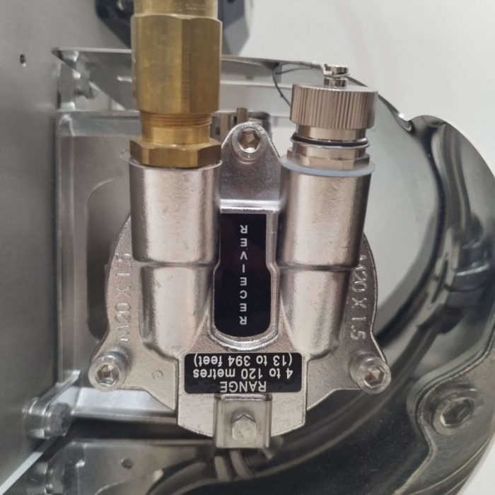 ریسیور یا گیرنده Dräger Polytron Pulsar (Open path gas detector Dräger Polytron Pulsar) مخصوص دتکتورگاز مسیر باز تایپ GD8 دارای پارت نامبر P/N:2350312 یک دستگاه چهار سیمه با ترمینالهای کابلی Vdc power24 و لوپ جریان آنالوگ و کامیونیکتور دیجیتالی توان و سیگنال مشترک میباشد. خروجی آنالوگ گاز 4-20 میلی آمپر کاملاً خطی شده قرائت ها و سیگنال های هشدار قابل تنظیم را فراهم میکند.