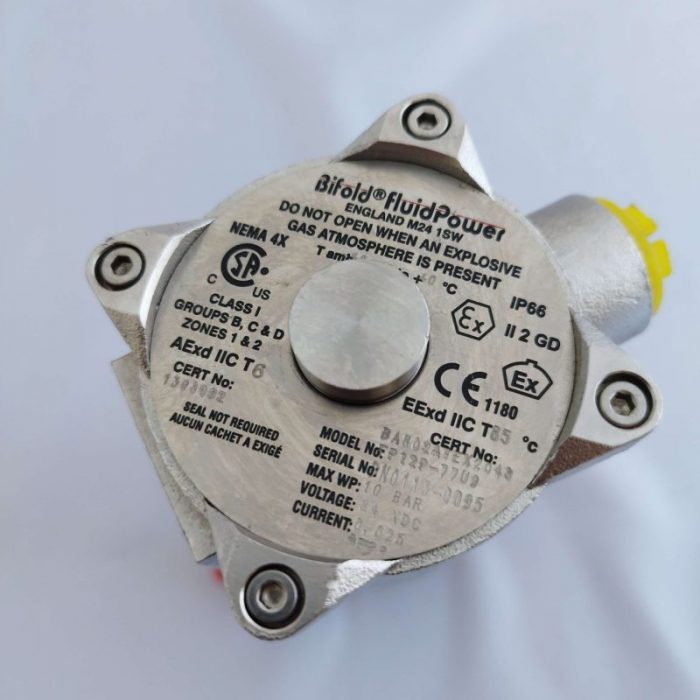 شیر برقی بیفولد FP12P برند – (Bifold) از زیر مجموعه کمپانی بزرگ ROTORK مدل FP12P یک سولنوئید ولو کامل با استاندارد های جهانی مناسب محیط های آبی، خاکی وحتی روغنی میباشد. نصب و راه اندازی ساده بهره گیری از کلیه استاندارد ها و تاییدیه های جهانی آن را مناسب محیط های سخت میکند. بدنه یکپارچه همراه با قابلیت ضد انفجاری EX ومحفظه برقی جادار برای سهولت در سیم کشی و بدون نیاز به کابل های دما بالا برای محیطهای گرمسیری این سولنوئید ولو را مناسب میکند.